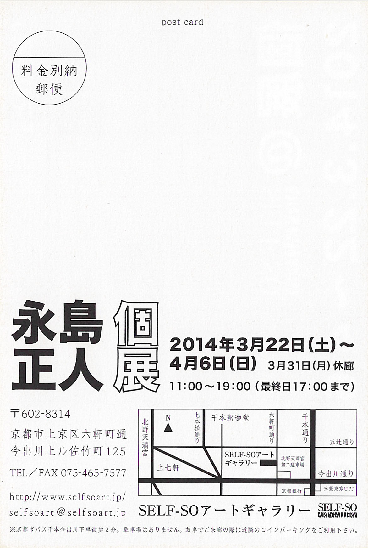 11:00〜19:00(最終日17:00まで) 3月31日(月)休廊